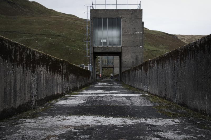 Industrial - leading lines - remote dreich dam walkway